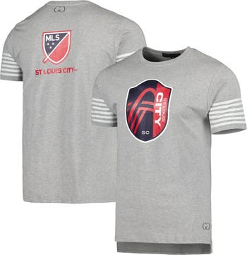 The Men's Grungy Gentleman Heather Gray St. Louis City SC T-shirt is the perfect way to show your support for your favorite soccer team. Made from a comfortable cotton and polyester blend, this t-shirt features sewn-on stripes and a droptail hem with side splits for a stylish look. The crew neck design makes it easy to wear, and the St. Louis City SC logo is proudly displayed on the front. Whether you're cheering on your team at the stadium or just showing your support around town, this t-shirt is a must-have for any St. Louis City SC fan.