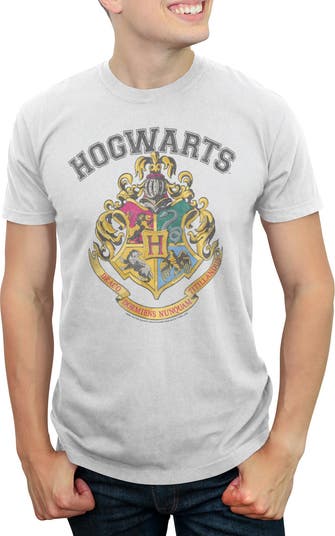 - Own the moment with this stylish new men's t-shirt that is perfect for every occasion! Featuring the awesome Hogwarts crest in an elegant style across the front.