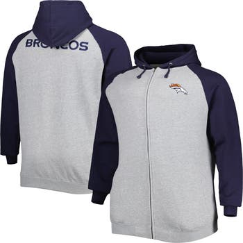 Men's Heather Gray Denver Broncos Big & Tall Fleece Raglan Full-Zip Hoodie Jacket