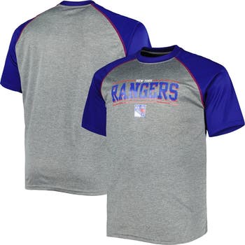 Represent your beloved New York Rangers in style with the Men's Heather Gray New York Rangers Big & Tall Logo Raglan T-Shirt. This comfortable polyester tee features a bold New York Rangers logo, proudly displaying your unwavering support for the team. The raglan sleeve design and flatlock stitching add a touch of athletic flair, while the crew neck ensures a classic fit. Whether you're cheering from the stands or simply showing your Rangers pride, this t-shirt is the perfect way to connect with the team and fellow fans.