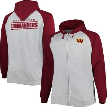The Men's Heather Gray Washington Commanders Big & Tall Fleece Raglan Full-Zip Hoodie Jacket is the ultimate way to show unwavering support for the Washington Commanders. This midweight hoodie features a cozy fleece lining, perfect for chilly game days. The contrast-color hood and sleeves add a stylish touch, while the embroidered Washington Commanders logo proudly displays your allegiance. Whether cheering from the stands or showing support, this hoodie is the perfect way to represent the Washington Commanders in style.