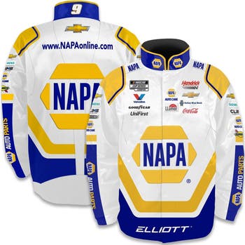 If you're a Chase Elliott fan, you're going to love rocking this NAPA Full-Snap Nylon Uniform Jacket from Hendrick Motorsports Team Collection. Featuring contrast-color trims and accents as well as all the brands that back Chase Elliott, this jacket has the look and feel of your favorite driver's uniform. Complete with two side pockets and an inside slip pocket, this Chase Elliott jacket has everything you need for race day.