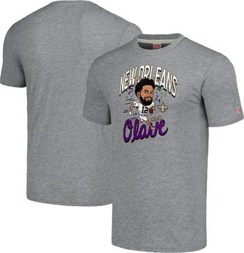 Men's Homage Chris Olave Gray New Orleans Saints Caricature Player Tri-Blend T-Shirt