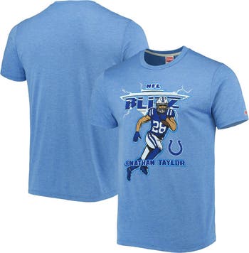 Men's Homage Jonathan Taylor Heathered Royal Indianapolis Colts NFL Blitz Player Tri-Blend T-Shirt