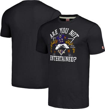 Celebrate your unwavering Baltimore Ravens fandom with the Men's Homage Ray Lewis Heathered Charcoal Baltimore Ravens Caricature Retired Player Tri-Blend T-Shirt. This exclusive tee features screen-printed graphics of the legendary Ray Lewis, honoring his iconic career with the Baltimore Ravens. Made from a comfortable blend of polyester, cotton, and rayon, this tri-blend t-shirt is perfect for game day or any day you want to show your Ravens pride.
