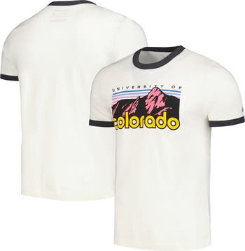 The Men's Homefield Cream Colorado Buffaloes Mountains Ringer T-Shirt is a must-have for any loyal Colorado Buffaloes fan. With its screen print graphics, this shirt proudly displays your unwavering support for the Buffaloes. Whether you're cheering them on at Folsom Field or just showing your team spirit around town, this shirt is the perfect way to represent your favorite college football team.