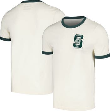 The Men's Homefield Cream Michigan State Spartans Ringer T-Shirt is the perfect way to show your unwavering support for the Michigan State Spartans. Made from a comfortable cotton and polyester blend, this t-shirt features screen print graphics that proudly display the Spartans logo. Whether you're cheering from the stands or simply showing your team spirit, this t-shirt is a must-have for any Michigan State Spartans fan.