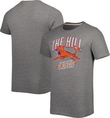 The Men's Homefield Heather Gray Clemson Tigers Vintage Running Down the Hill T-Shirt is a must-have for any Clemson Tigers fan. This comfortable cotton-polyester blend tee features screen print graphics that capture the iconic moment of the Clemson Tigers running down the hill into Death Valley. Whether you're cheering on the Tigers at the stadium or just showing your support around town, this shirt is the perfect way to represent your team.