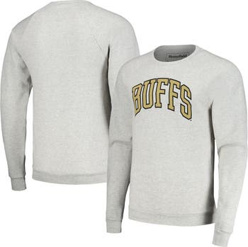 The Men's Homefield Heather Gray Colorado Buffaloes Raglan Pullover Sweatshirt is the perfect way to show your support for the Colorado Buffaloes. Made from a lightweight blend of polyester, cotton, and rayon, this sweatshirt is ideal for mild temperatures. The raglan sleeves and screen-printed graphics add a touch of style, while the comfortable fit will keep you warm and cozy all game long. Whether you're cheering on the Buffaloes at the stadium or relaxing at home, this sweatshirt is a must-have for any fan.