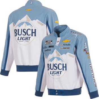 Men's JH Design White/Light Blue Ross Chastain Busch Light Full-Snap Twill Uniform Jacket