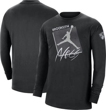 Men's Jordan Brand Black Brooklyn Nets Courtside Max 90 Vintage Wash Statement Edition Long Sleeve T-Shirt