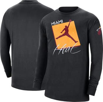 Men's Jordan Brand Black Miami Heat Courtside Max 90 Vintage Wash Statement Edition Long Sleeve T-Shirt