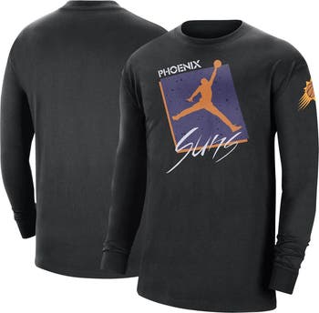 The Men's Jordan Brand Black Phoenix Suns Courtside Max 90 Vintage Wash Statement Edition Long Sleeve T-Shirt is a must-have for any true Phoenix Suns fan. With its washed-out fabric for a vintage look, this shirt will make you feel like you're part of the team. The screen print graphics feature the iconic Phoenix Suns logo, so you can show your support for your favorite team in style. Made from 100% cotton, this shirt is comfortable and breathable, perfect for cheering on the Phoenix Suns from the stands or at home.