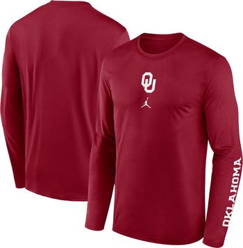Men's Jordan Brand Crimson Oklahoma Sooners Primetime Center Lockup Two-Hit Legend Long Sleeve T-Shirt