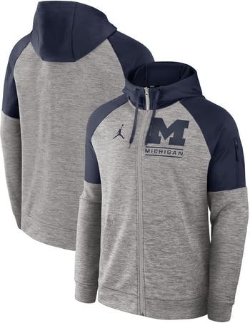 Enhance your workout while repping your favorite university in this Michigan Wolverines Fitness Performance Full-Zip Hoodie from Jordan Brand. This hoodie features Dri-FIT technology that wicks away moisture and a fleece lining for added warmth and a soft feel. Raglan sleeves allow for greater freedom of movement in the shoulders and arms, making it perfect for any workout.