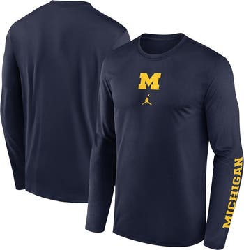 Men's Jordan Brand Navy Michigan Wolverines Primetime Center Lockup Two-Hit Legend Long Sleeve T-Shirt