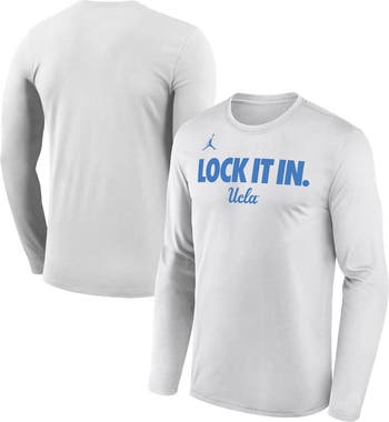 Dribble past the competition in this UCLA Bruins On-Court Bench Long Sleeve T-Shirt from Jordan Brand. Matching what the players on the bench will wear during the 2026 NCAA Basketball season, this tee features a "Lock It In" wordmark across the chest with the UCLA Bruins logo underneath. With Dri-FIT technology to wick away sweat and a lightweight, breathable build, you'll be able to hit the gym or enjoy even the most intense matches while staying cool and comfortable.