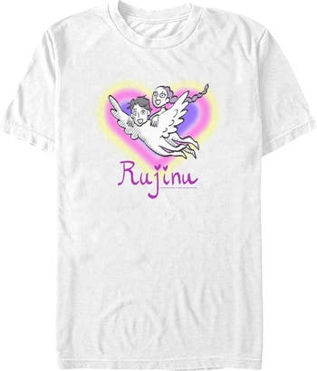 Prepare for debut with these incredible designs from the new, top-charting Netflix Film: K-Pop Demon Hunters! Dance to Soda Pop or Takedown with this Men's Fan Art Rujinu Graphic T-shirt featuring a cute fan art of Rumi and Jinu soaring through the sky with a colorful heart in the background and the word "Rujinu" printed below. These designs are going to be everything you can think of, so gear up to take all demons down while looking like the greatest idol the world has ever seen with out-of-this-world, officially licensed K-Pop Demon Hunters apparel!
