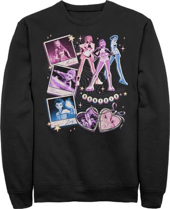 Prepare for debut with these incredible designs from the new, top-charting Netflix Film: K-Pop Demon Hunters! Dance to Soda Pop or Takedown with this Men's Huntrix Cute Instant Film Portrait Graphic Crewneck Sweatshirt that features Rumi, Zoey, and Mira in cute poses, portraits of them in pink, blue, and purple colors, and a cute heart locket surrounded by stars. These designs are going to be everything you can think of, so gear up to take all demons down while looking like the greatest idol the world has ever seen with out-of-this-world, officially licensed K-Pop Demon Hunters apparel!