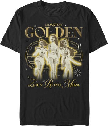 Prepare for debut with these incredible designs from the new, top-charting Netflix Film: K-Pop Demon Hunters! Dance to Soda Pop or Takedown with this Men's Huntrix The Golden Girls Graphic T-shirt that features Rumi, Zoey, and Mira glowing in a golden color, the word "Golden" and the band logo, "Huntrix" are printed above. These designs are going to be everything you can think of, so gear up to take all demons down while looking like the greatest idol the world has ever seen with out-of-this-world, officially licensed K-Pop Demon Hunters apparel!
