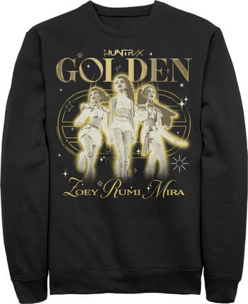 Prepare for debut with these incredible designs from the new, top-charting Netflix Film: K-Pop Demon Hunters! Dance to Soda Pop or Takedown with this Men's Huntrix The Golden Girls Graphic Crewneck Sweatshirt that features Rumi, Zoey, and Mira glowing in a golden color, the word "Golden" and the band logo, "Huntrix" are printed above. These designs are going to be everything you can think of, so gear up to take all demons down while looking like the greatest idol the world has ever seen with out-of-this-world, officially licensed K-Pop Demon Hunters apparel!