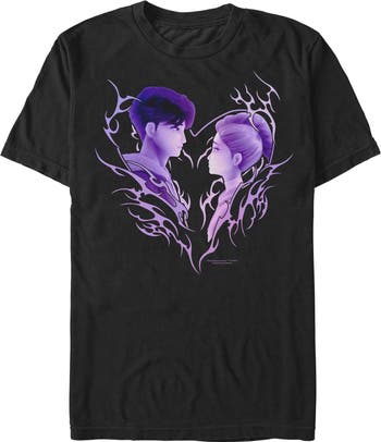 We're going up, up, up, and these trendy designs from the new animated film K-Pop Demon Hunters won't stay behind! Whether you're a demon hunter or a regular idol, you can't go wrong with this Men's Jinu and Rumi Love Graphic T-shirt that features Rumi and Jinu's profile looking at each other, surrounded by bold, purple lines that resemble a heart. Get golden to conquer the Idol Awards and embrace your true self to show the world how it's done!
