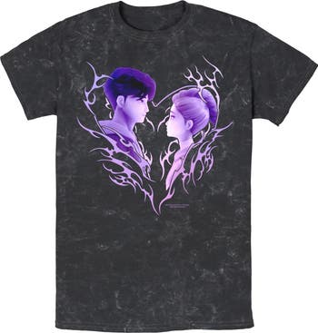 We're going up, up, up, and these trendy designs from the new animated film K-Pop Demon Hunters won't stay behind! Whether you're a demon hunter or a regular idol, you can't go wrong with this Men's Jinu and Rumi Love Graphic Mineral Wash T-shirt that features Rumi and Jinu's profile looking at each other, surrounded by bold, purple lines that resemble a heart. Get golden to conquer the Idol Awards and embrace your true self to show the world how it's done!