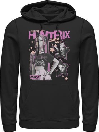 Prepare for debut with these incredible designs from the new, top-charting Netflix Film: K-Pop Demon Hunters! Dance to Soda Pop or Takedown with this Men's Pop Star Huntrix Mira Graphic Hoodie that features Mira with some portraits of her framed by stars, the quote "How It's Done" and the band name "Huntrix" in bold purple lettering printed above. These designs are going to be everything you can think of, so gear up to take all demons down while looking like the greatest idol the world has ever seen with out-of-this-world, officially licensed K-Pop Demon Hunters apparel!