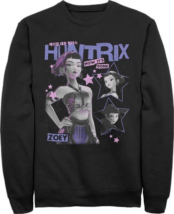 Prepare for debut with these incredible designs from the new, top-charting Netflix Film: K-Pop Demon Hunters! Dance to Soda Pop or Takedown with this Men's Pop Star Huntrix Zoey Graphic Crewneck Sweatshirt that features Zoey with some portraits of her framed by stars, the quote "How It's Done" and the band name "Huntrix" in bold purple lettering printed above. These designs are going to be everything you can think of, so gear up to take all demons down while looking like the greatest idol the world has ever seen with out-of-this-world, officially licensed K-Pop Demon Hunters apparel!