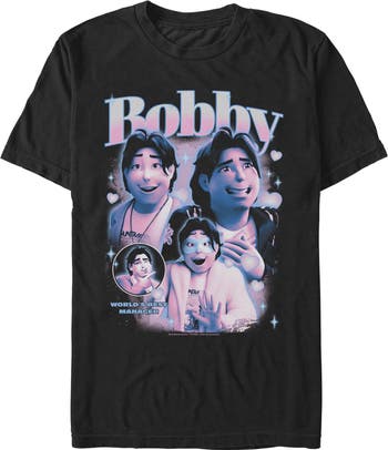 Prepare for debut with these incredible designs from the new, top-charting Netflix Film: K-Pop Demon Hunters! Dance to Soda Pop or Takedown with this Men's World's Best Manager Graphic T-shirt that features the world's best manager, Bobby, in a cute collage surrounded y hearts and his name printed above. These designs are going to be everything you can think of, so gear up to take all demons down while looking like the greatest idol the world has ever seen with out-of-this-world, officially licensed K-Pop Demon Hunters apparel!