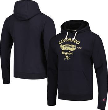 The Men's League Collegiate Wear Black Colorado Buffaloes Stadium Essential Pullover Hoodie is the perfect way to show your support for the Colorado Buffaloes. Made from a comfortable cotton and polyester blend, this midweight hoodie features a fleece lining for added warmth during chilly game days. Distressed screen print graphics proudly display your allegiance, while the pullover design makes it easy to layer up or down. Whether you're cheering from the stands or simply showing your support, this hoodie is the perfect way to represent the Colorado Buffaloes in style.