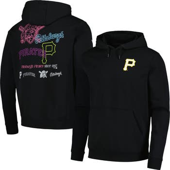 The Men's Levelwear Black Pittsburgh Pirates Podium Vintage Pullover Hoodie is the perfect way to show your support for the Pittsburgh Pirates. Made from a comfortable cotton and polyester blend, this midweight hoodie features a fleece lining for added warmth during chilly game days. Screen-printed graphics proudly display your allegiance to the Pittsburgh Pirates, while the front pouch pocket provides a convenient place to store your essentials. Whether you're cheering from the stands or simply showing your support, this hoodie is the perfect way to represent the Pittsburgh Pirates in style.