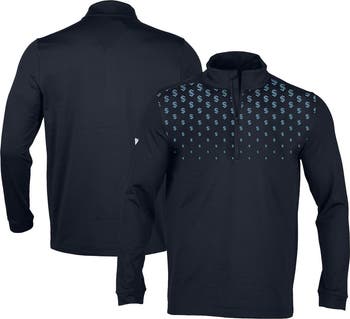 The Men's Levelwear Navy Seattle Kraken NHL x PGA Scout Midlayer Quarter-Zip Pullover Top is the perfect way to show your support for the Seattle Kraken. Made of lightweight polyester and spandex, this top is ideal for mild temperatures. The quarter-zip closure and mock neck provide a comfortable fit, while the screen print graphics proudly display your Seattle Kraken pride. Whether you're cheering on the team at the rink or just showing your support around town, this top is sure to become a favorite.