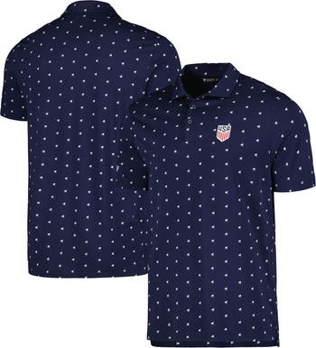 The Men's Levelwear Navy USMNT Rover Polo is a stylish and comfortable choice for any United States Men's National Team (USMNT) enthusiast. Its heat-sealed vinyl applique with embossed graphics and three-button placket add a touch of sophistication, while the droptail hem with side splits ensures a relaxed fit. Made from a blend of pima cotton and modal, this polo is perfect for showing your support for the USMNT both on and off the field.