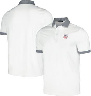 The Men's Levelwear White USMNT Thomas Performance Polo embodies the unwavering spirit of the United States Men's National Team. Its heat-sealed vinyl applique with embossed graphics proudly displays the team's iconic crest, evoking unity and pride. Odor-resistant fabric ensures comfort and freshness, allowing unwavering support for the team. Whether at the stadium or showing support, this polo embodies the passion and determination driving the USMNT to victory.