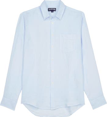 - The Caroubis classic men's shirt looks just as good with Bermuda shorts, trousers or swim shorts. This essential, long-sleeved Vilebrequin piece is made from soft linen with a casual drape. Its simple cut includes a breast pocket as well as a discreet embroidered tone-on-tone turtle at the hem of the shirt.