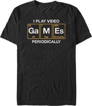 - Strut your stuff with this stylish new men's big & tall t-shirt that is perfect for every occasion! Featuring the text: "I Play Video Games Periodically" with the word "Games" written in the style of the periodic table of elements.