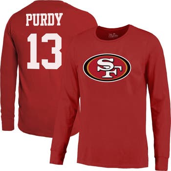 Men's Majestic Threads Brock Purdy Scarlet San Francisco 49ers Name & Number Long Sleeve T-Shirt