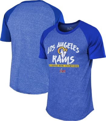 Men's Majestic Threads Royal Los Angeles Rams 2-Time Super Bowl Champions Tri-Blend Raglan T-Shirt
