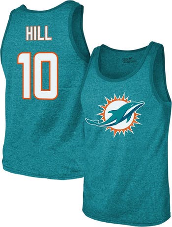 Men's Majestic Threads Tyreek Hill Aqua Miami Dolphins Tri-Blend Player Name & Number Tank Top