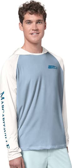Men's Margaritaville Light Blue/Cream Seattle Seahawks Sand, Sea, Sunsets Long-Sleeve Rashguard Hoodie Pullover