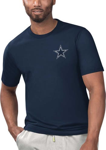 The Margaritaville Navy Dallas Cowboys Licensed to Chill T-shirt is the perfect way to show your support for the Dallas Cowboys. Made from a comfortable cotton and polyester blend, this T-shirt features screen-printed graphics that proudly display the Dallas Cowboys logo. The crew neck design makes it easy to wear, and the relaxed fit ensures a comfortable feel. Whether you're cheering on the Cowboys at the game or just relaxing at home, this T-shirt is a must-have for any fan.