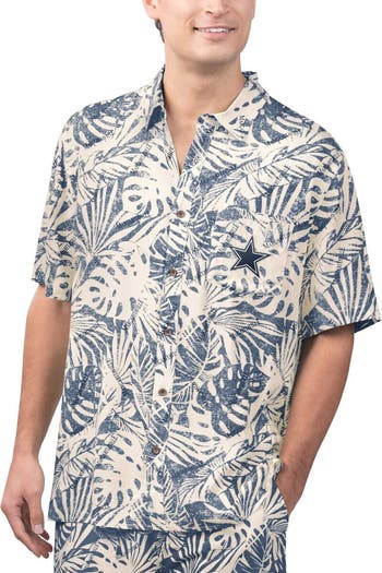 Men's Margaritaville Navy Dallas Cowboys Sand Washed Monstera Full-Button Party Shirt