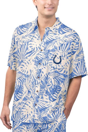 Men's Margaritaville Tan Indianapolis Colts Sand Washed Monstera Print Party Button-Up Shirt