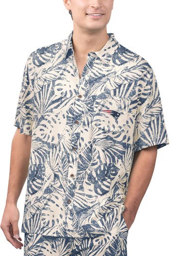 Celebrate your unwavering New England Patriots fandom with the Margaritaville Tan New England Patriots Sand Washed Monstera Print Party Button-Up Shirt. This stylish shirt features embroidered New England Patriots graphics, a single chest pocket, and a washed rayon fabric for a comfortable and relaxed fit. Whether you're cheering from the stands or enjoying a casual day out, this shirt is the perfect way to show your support for the New England Patriots and enhance your sporting lifestyle.