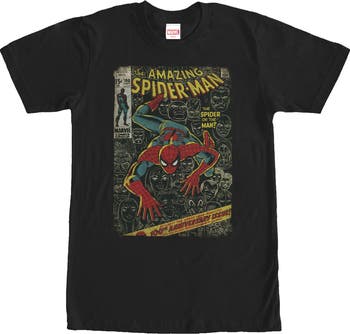 Lose yourself in the pages of a comic book with the Marvel Spider-Man Comic Book Anniversary Black T-Shirt! This awesome black Spider-Man shirt displays a print of a classic comic book cover with "The Amazing Spider-Man 100th Anniversary Issue" alongside a vintage style Spider-Man crawling towards you.