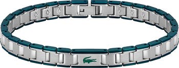 This striking two-tone bracelet is designed with iconic Lacoste DNA from the signature crocodile to the watchband-inspired links.