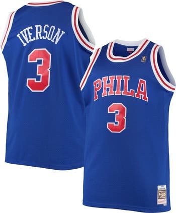 Before the next game tips off, pay homage to your team's storied past while also recognizing one of its all-time brightest stars with this Philadelphia 76ers Allen Iverson 1996/97 Hardwood Classics Swingman jersey from Mitchell & Ness. Its throwback-inspired design and player-specific graphics are sure to remind fellow fans of all their favorite Philadelphia 76ers moments, both past and present.