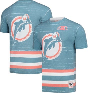 The Mitchell & Ness Aqua Miami Dolphins Jumbotron 3.0 T-shirt is a must-have for true Miami Dolphins fans. Its vibrant sublimated graphics and woven jock tag at the hem proudly display unwavering support for the team. Whether cheering from the stands or watching at home, this shirt declares loyalty to the Miami Dolphins.