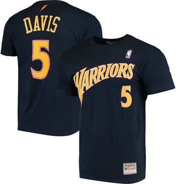Men's Mitchell & Ness Baron Davis Navy Golden State Warriors Hardwood Classics Stitch Name & Number T-Shirt